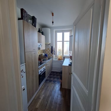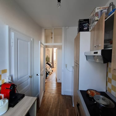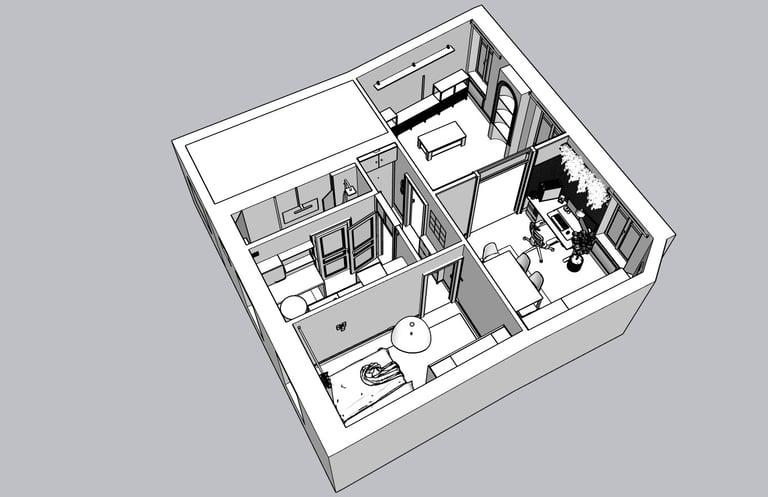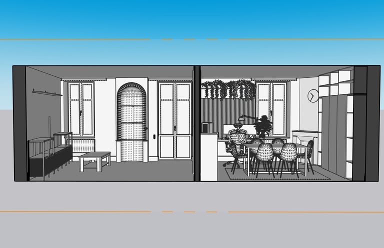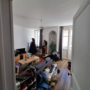 Un client souhaitait aménager son appartement haussmannien avec un style industriel, tout en conservant son charme et en respectant un budget de 5000€. Insatisfait des résultats obtenus via des IA génératives, qui manquaient de cohérence et ne prenaient pas en compte les aspects pratiques du projet (budget, matériaux, mobilier), il m’a sollicité. Lors d’une visite, nous avons échangé sur ses envies et les contraintes de son espace afin de définir une solution adaptée.