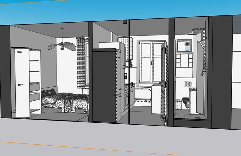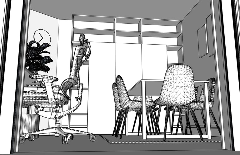 Modélisation de l'espace en 3D et des différents éléments à intégrer.