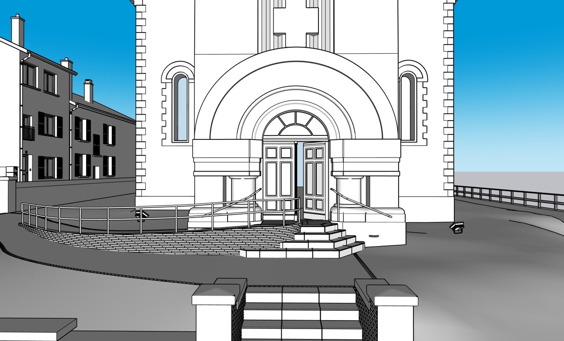 Le principal défi fut d’intégrer la rampe PMR sans altérer l’architecture existante de l’église, tout en respectant les normes d’accessibilité applicables aux ERP existants.