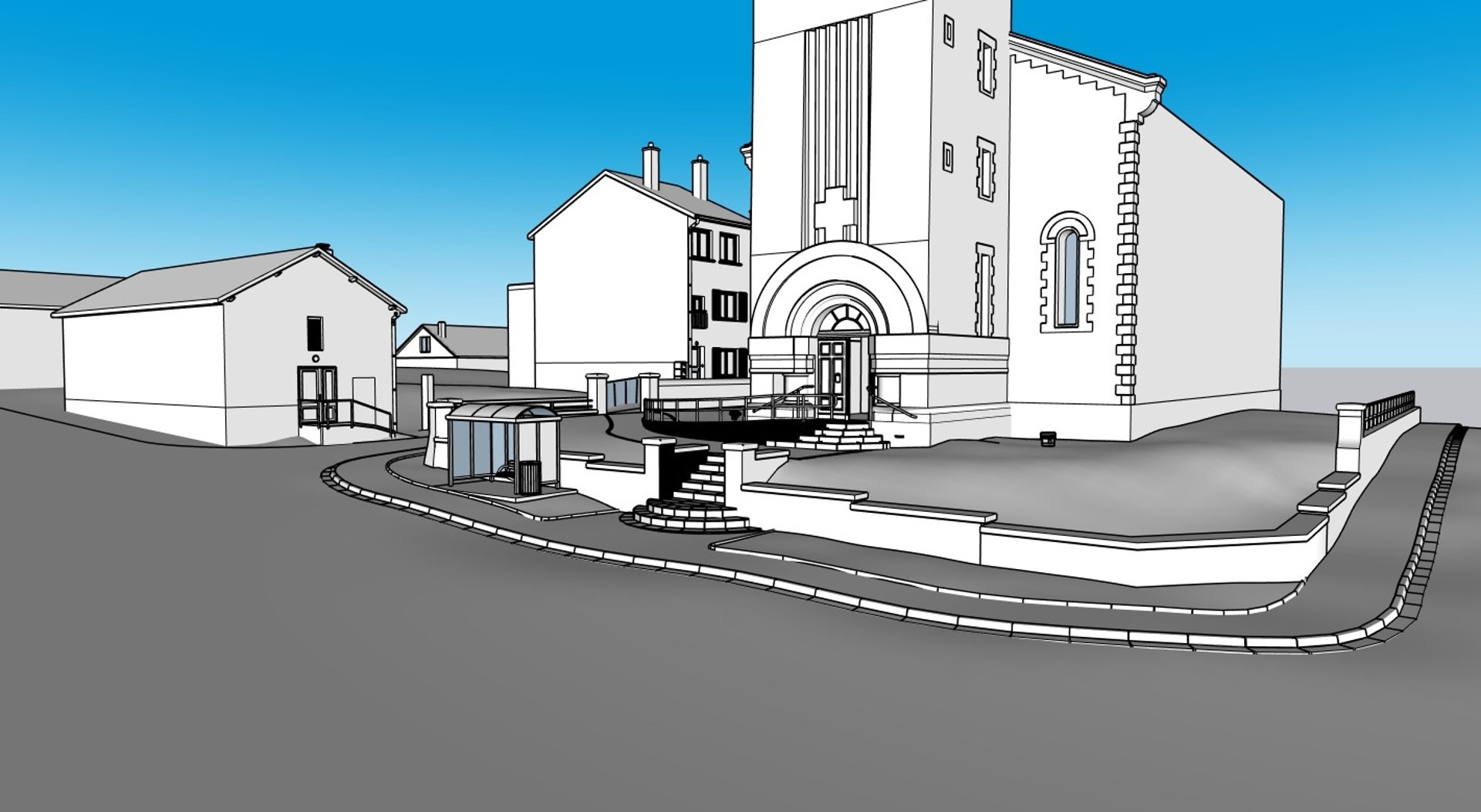 Le projet a nécessité une prise en compte précise de la topographie du terrain, la recherche d’une solution d’intégration harmonieuse et la modélisation complète du monument.