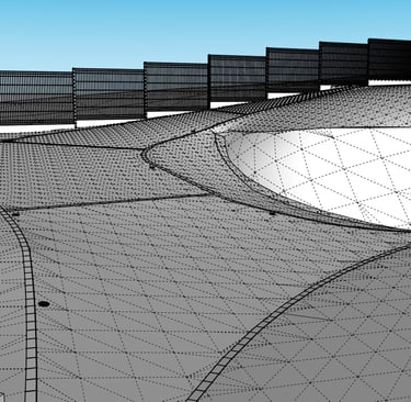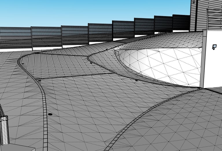 La conception intègre également les différents espaces de vie extérieurs — terrasses, boulodrome, piscine naturelle et pool house — implantés de manière à respecter la topographie du terrain, les usages et les vues. La modélisation fine du terrain et le choix des matériaux ont permis d’assurer une continuité visuelle et fonctionnelle entre l’ensemble des aménagements, du bâti jusqu’aux espaces paysagers.