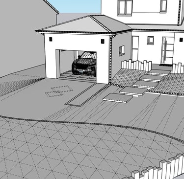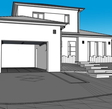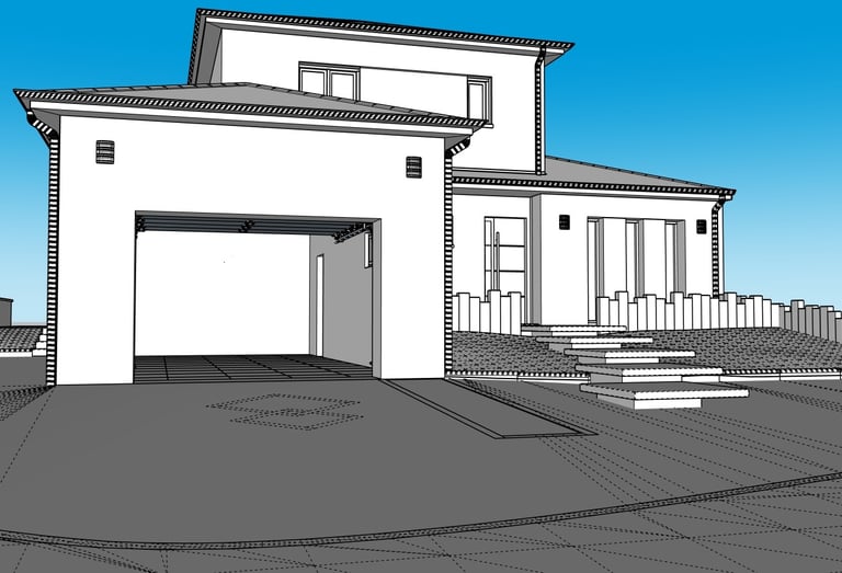 La modélisation du terrain, de la maison et des matériaux a permis d’anticiper les volumes, les pentes et les raccords, et d’offrir une lecture claire et réaliste du projet final avant sa mise en œuvre.